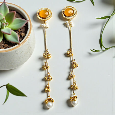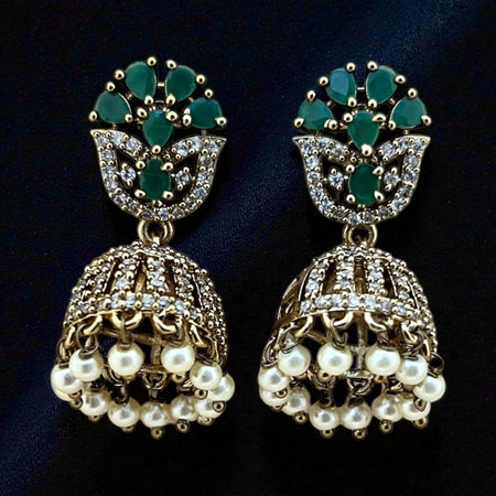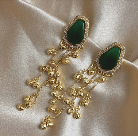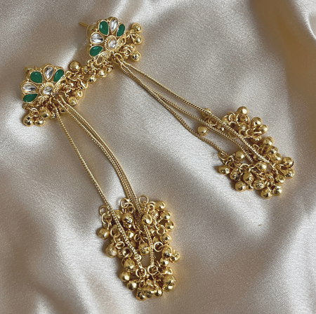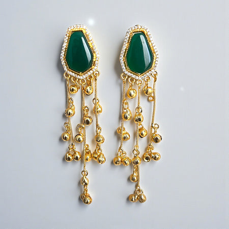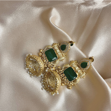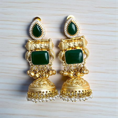 Aroopa Handcrafted Green Stone Long Jhumka Earrings – Ethnic Bridal Jewelry